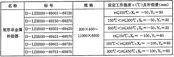 矩形非金(jīn)屬補償器根據不同的工作溫度和補償量進行分類,編(biān)目如下: